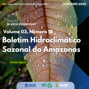 Lançado o Boletim Hidroclimático Sazonal do Amazonas. Volume 03, Número 04. Mês de Março/2025. Boletim Hidroclimatico Sazonal do Amazonas já está disponível para download na seção